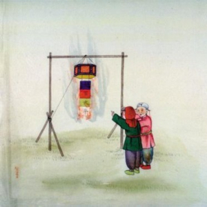 小孩放花盒,即燃放烟花盒子,古代烟花爆竹的一种