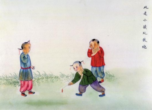 原标题: 小孩放花盒,即燃放烟花盒子,古代烟花爆竹的一种