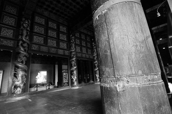 清东陵工作人员王新光每次讲述慈禧陵,都会说到大殿内满眼寸木寸金的黄花梨木。“三座大殿64根柱子都是黄花梨木制成,眼睛能看到的木质结构都与黄花梨有关。曾盘踞于柱子上的铜鎏金的盘龙也早已不知所踪,现在的盘龙都是后仿的。”