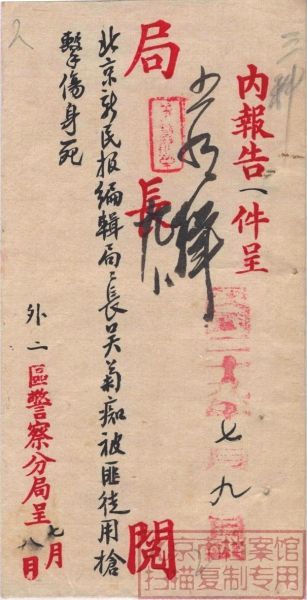 1940年7月7日这一天,是卢沟桥事变3周年的日子。日伪“北京”当局决定在中山公园召开“庆祝皇军圣战三周年”的庆祝会,大会由伪新民会的机关报《新民报》编辑局局长吴菊痴主办。