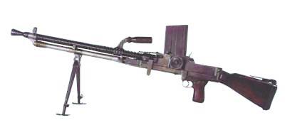 在抗日战争战场上,与“捷克造”对垒的就是俗称“歪把子”的日本大正十一式轻机枪。该枪的设计理念源自哈奇开斯机枪。其基本设计要求是为日军班、组提供便携支援火力。为保证通用性,该枪采用了与“三八大盖”步枪相同的6.5毫米步枪弹。由于其瞄准基线偏于枪面右侧,为了避免使用者在瞄准时过于向右歪脖子,所以将本来就十分细长的枪颈向右弯曲,以使枪托的位置能满足抵肩据枪瞄准。“歪把子”由此得名。